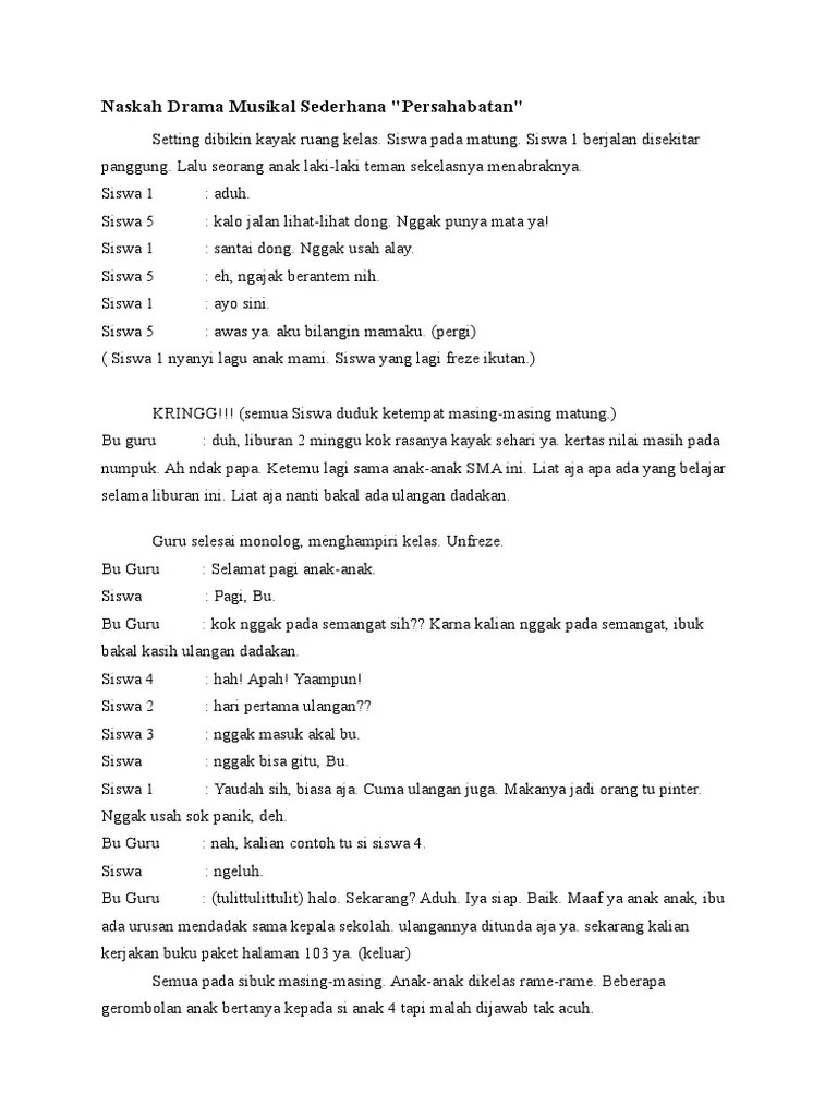 Contoh naskah drama musikal sederhana persahabatan setting dibikin kayak ruang kelas. Teks drama musikal islami naskah drama musical. 28 downloads 984 views 71kb size. Cerita rakyat asal mula rawa pening jawa tengah cerita rakyat legenda kota surabaya dalam baha. Kegiatan pramuka malam itu terlihat menyenangan.