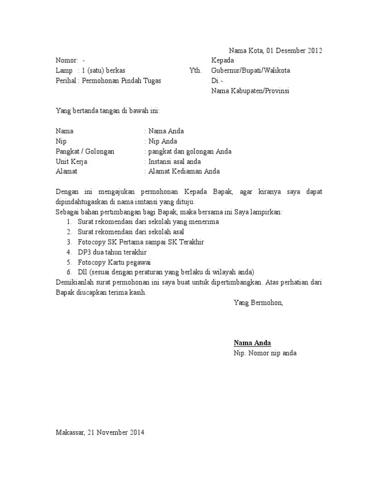 Contoh surat permohonan pindah tugasdeskripsi lengkap. Pengelolaan perpindahan (mutasi) pegawai negeri sipil antar opd. Mutasi pindah pns ke lingkungan pemerintah propinsi sumatera barat. Saat akan mengajukan surat pindah kerja pns, harus memiliki surat rekomendasi dari atasan. Bapak kepala lembaga pemasyarakatan kelas ii a narkotika jakarta contoh surat permohonan mutasi pns (guru).