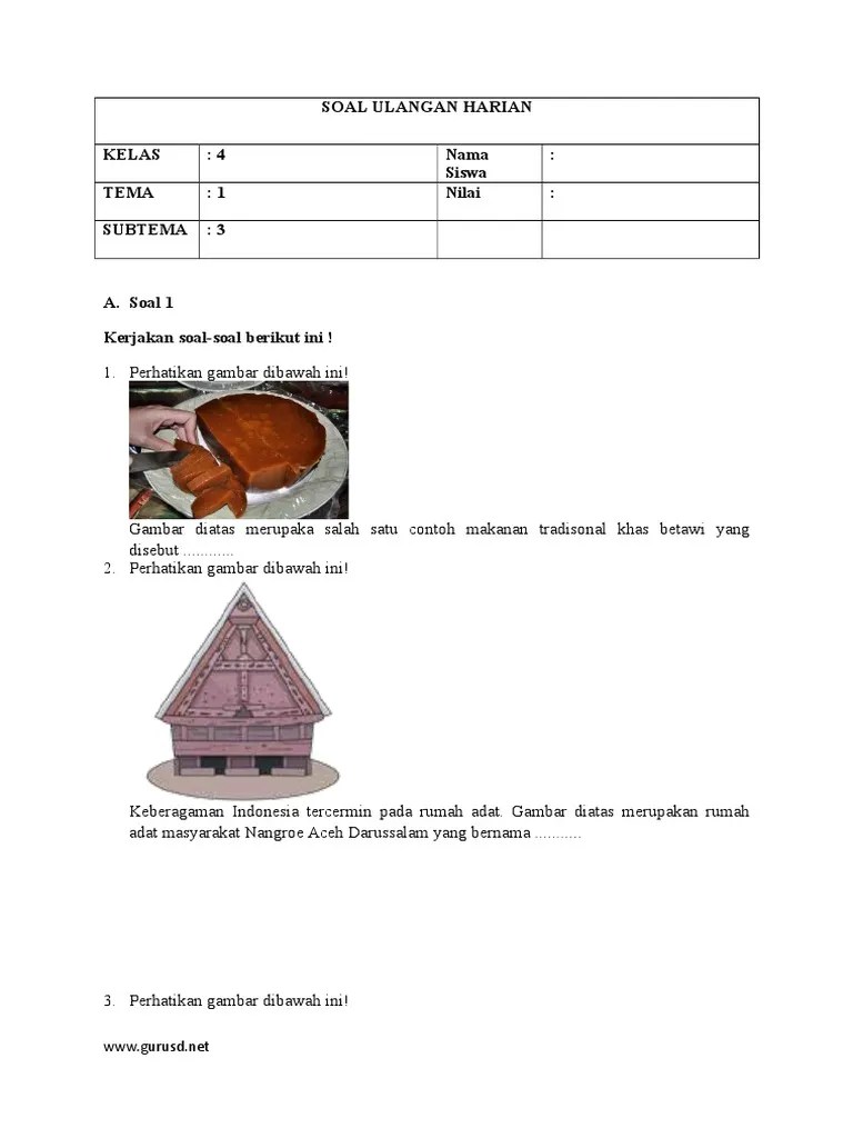 Latihan Soal Tematik Kelas 3 Rumah Adat / Lkpd T7st2pb3 4 Worksheet - Rumah adat diatas berasal dari ….. Bika ambon adalah makanan khas dari provinsi. Seperti yang dikutip dari tribun . Contoh kegiatan keberagaman bersatu adalah …. Carilah dan tuliskan keunikan salah satu rumah adat suatu daerah! Limas dan joglo adalah contoh nama ….